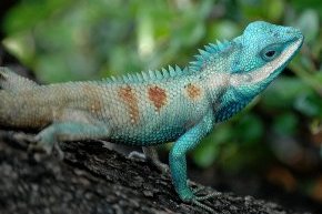 The Rainbow Agama, as it common name implies, is a very colorful lizard that can be found Sahara, Africa. This lizard is often seen in the heat of the day. During mating season the males become stunningly colorful; the head and neck and also tail turning bright orange, and the body dark blue. It feeds on insects and is also commonly known as the Red-headed Agama and the Common Agama.