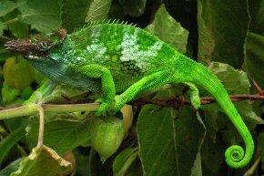 The Panther Chameleon is a very colorful chameleon species that inhabits tropical forest in Madagascar. Male Panther Chameleon, which is more brilliantly colored and much larger than, can grow up to more than 45 cm in length. Of all the most colorful lizards, Panther Chameleon is one of the best choices for a pet. Just provide it with a precise environment which is almost exactly the same as a jungle and feed it with necessary foods which are rich in vitamins.